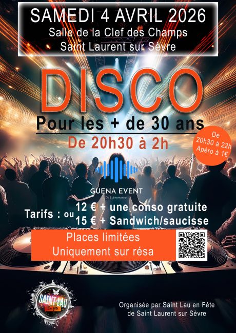 Lien de réservation : https://www.helloasso.com/associations/saint-lau-en-fete/evenements/disco-2026-1